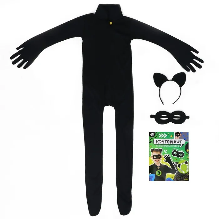Карнавальный набор «Крутой кот», р. М, комбинезон, маска, ободок, рост 116–128 см — Характеристики