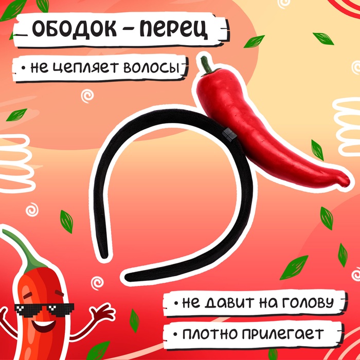 - Ободок. Стильный и мягкий ободок с объёмным изображением перца станет завершающим штрихом костюма. Яркий и красочный, он привлечёт внимание всех окружающих.