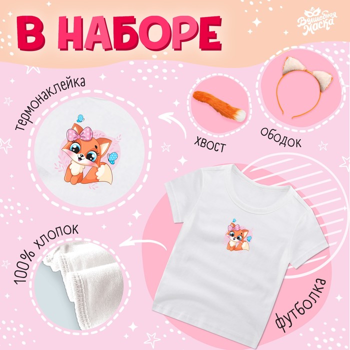 Карнавальный набор «Лисичка»: футболка, юбка, ободок, хвост, термонаклейка, рост 98–110 см — Характеристики