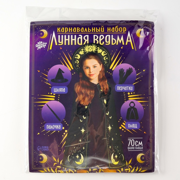 Карнавальный набор «Лунная ведьма», плащ 70 см, шляпа, перчатки, палочка — Характеристики