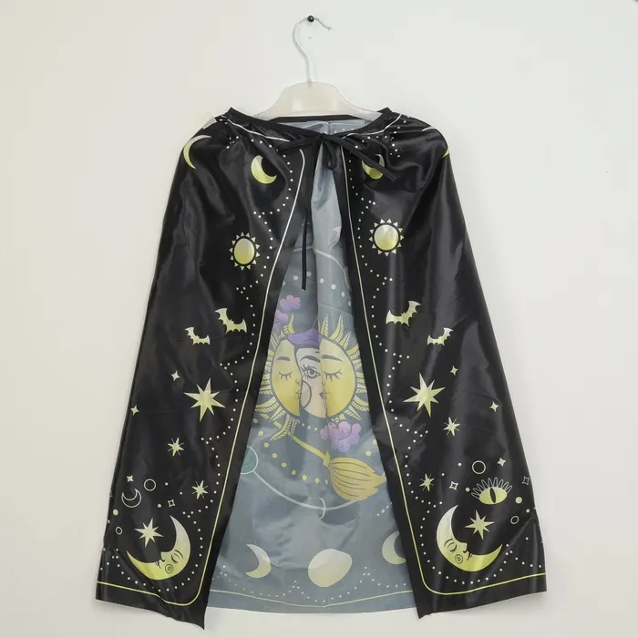 - Плащ длинной 70 см, из мягкой ткани с тематическим дизайном, создаст атмосферу загадочности и таинственности. Плащ на завязках, что обеспечивает комфортную посадку