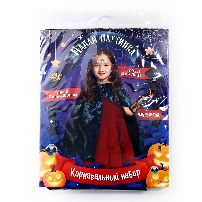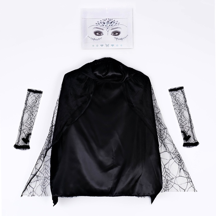 Карнавальный набор «Мадам паутина», плащ, перчатки, стразы — Характеристики