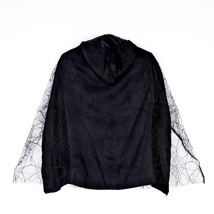 - Плащ. Длинный чёрный плащ с капюшоном окутает вас таинственностью. Плащ дополнен сеткой с креативным узором паутины, который добавляет образу загадочности. Длина плаща без капюшона составляет 70 см.