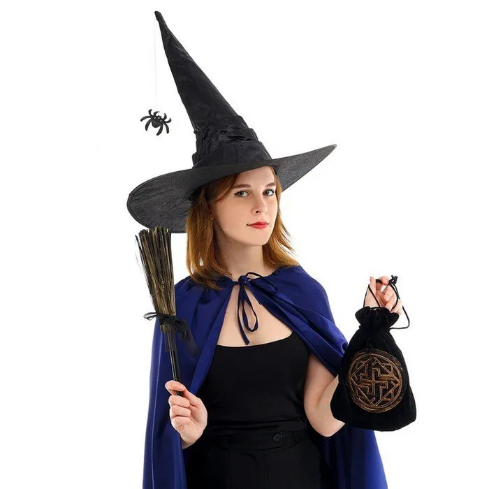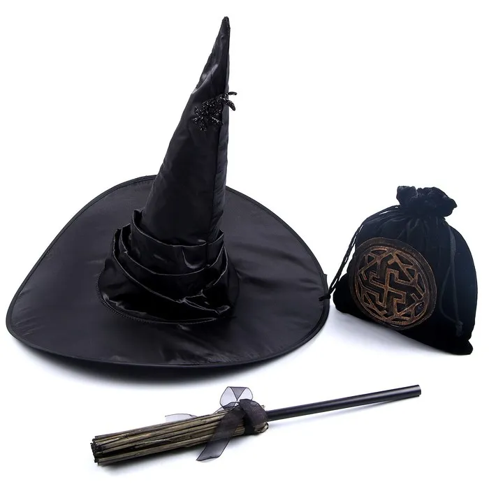 Главным элементом набора является шляпа. Этот аксессуар подойдет для создания образа волшебника или колдуна. Шляпа выполнена из качественных материалов и украшена декоративными элементами, добавляющими загадочности и таинственности.