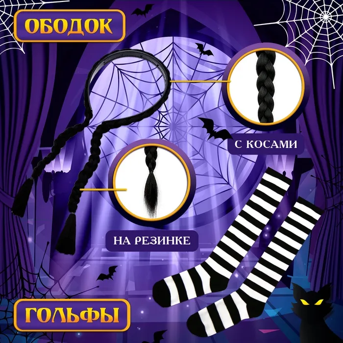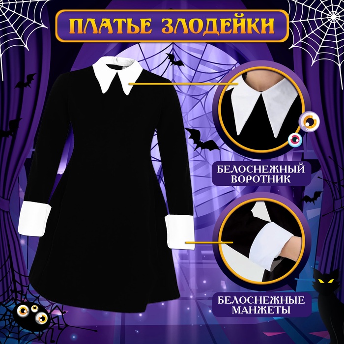 Карнавальный набор «Маленькая злодейка»: платье, ободок с косами, гольфы, сумка, рост 110-116 см — Характеристики