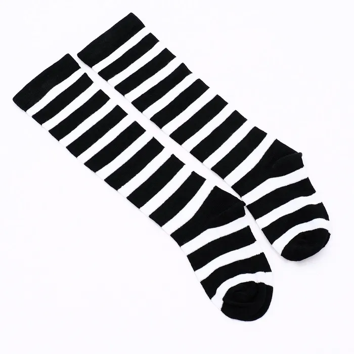 - Гольфы — полосатые гольфы в тон наряду создадут завершённый образ маленькой модницы.