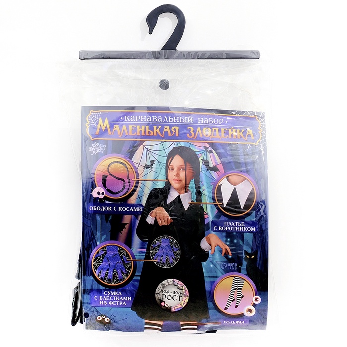 Карнавальный набор «Маленькая злодейка»: платье, ободок с косами, гольфы, сумка, рост 116-122 см — Характеристики