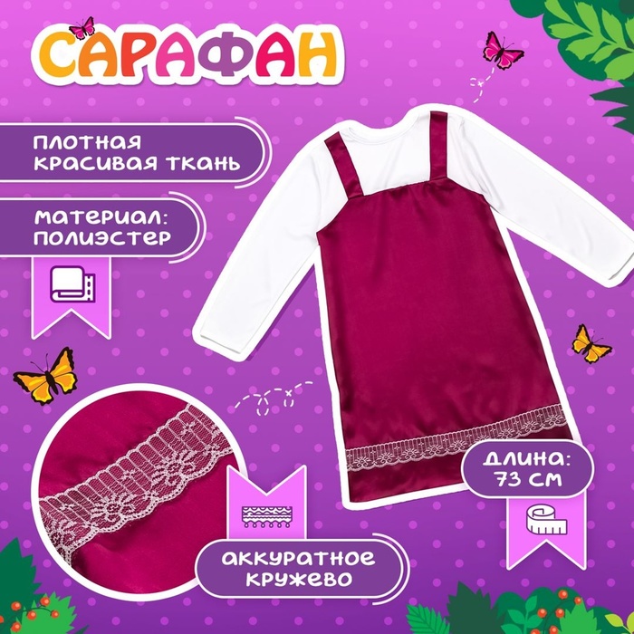 - Длина сарафана составляет 73 см, поэтому подходит для детей дошкольного и младшего школьного возраста.
