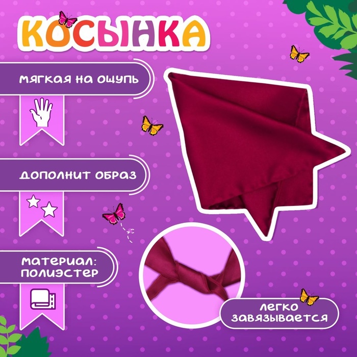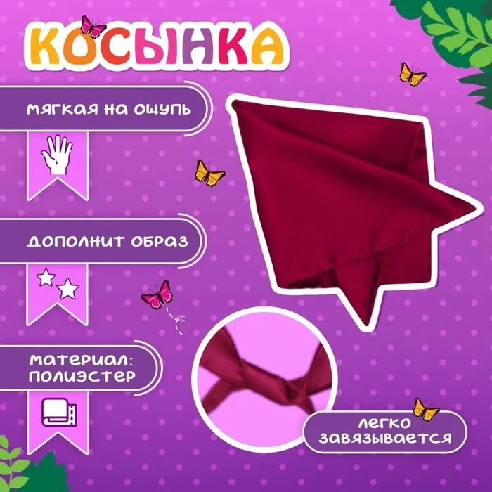- Мягкая косынка легко завязывается и дополняет образ, не причиняя неудобств при ношении.