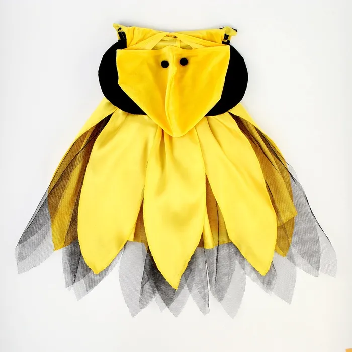 - Платье с крылышками: Лёгкое и воздушное платье с ярким принтом в виде пчёлки. Крылышки придают образу волшебства и реалистичности. Платье выполнено из мягкого и приятного к телу материала, поэтому ребенку будет комфортно его носить во время праздника.