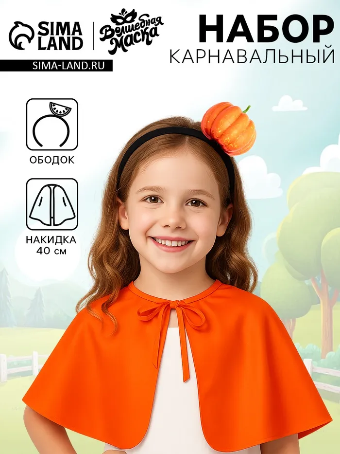 Карнавальный набор «Милая тыква»: накидка, ободок — Характеристики