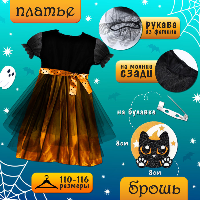 Карнавальный набор «Милая ведьмочка», рост 110-116 см, цвет оранжевый — Характеристики