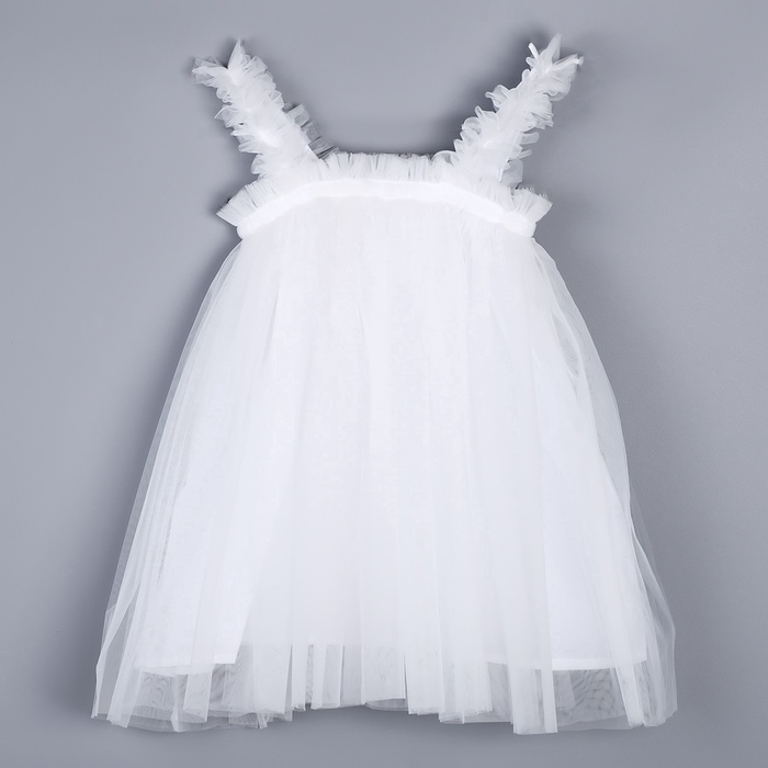 - Белоснежное пышное платье — выполнено из легкой и воздушной ткани, что подарит вашей малышке комфорт и свободу движений. Платье украшено изящными деталями, которые подчеркнут ее нежность и хрупкость.