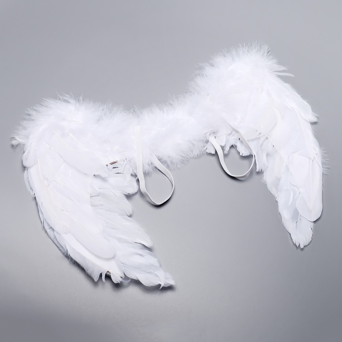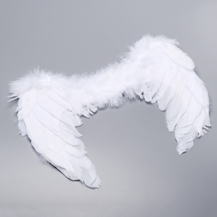 - Белоснежные пушистые крылья — выполнены из мягкого материала и украшены перьями. Крылья на резинке легко надеваются на плечики.