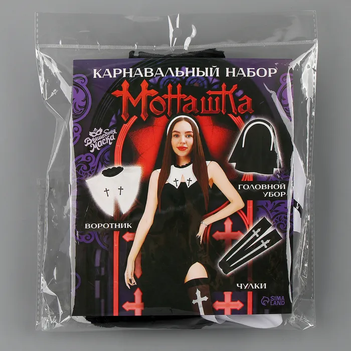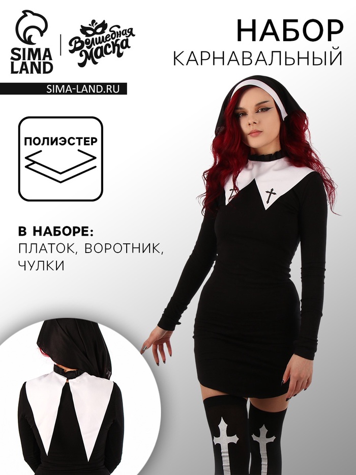 Карнавальный набор «Монашка», головной убор: платок, воротник, чулки — Характеристики