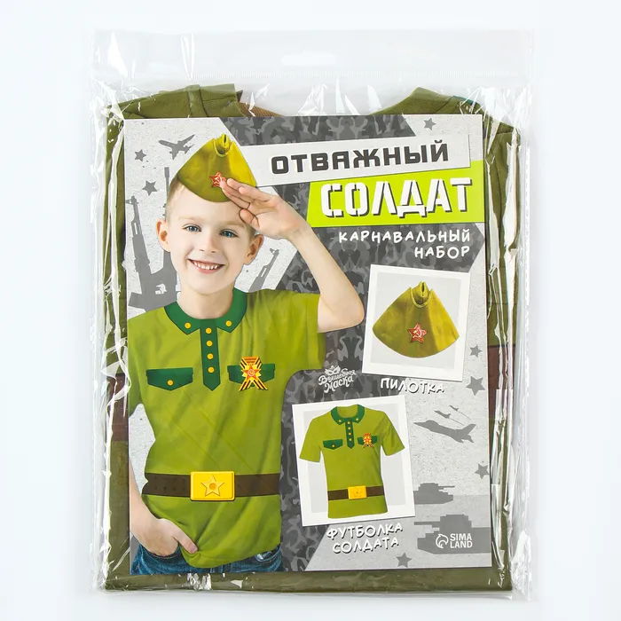 Комплект станет отличным решением для костюмированных вечеринок, праздников в школе или военных игр. Яркий образ отважного солдата порадует ребёнка и создаст праздничное настроение.