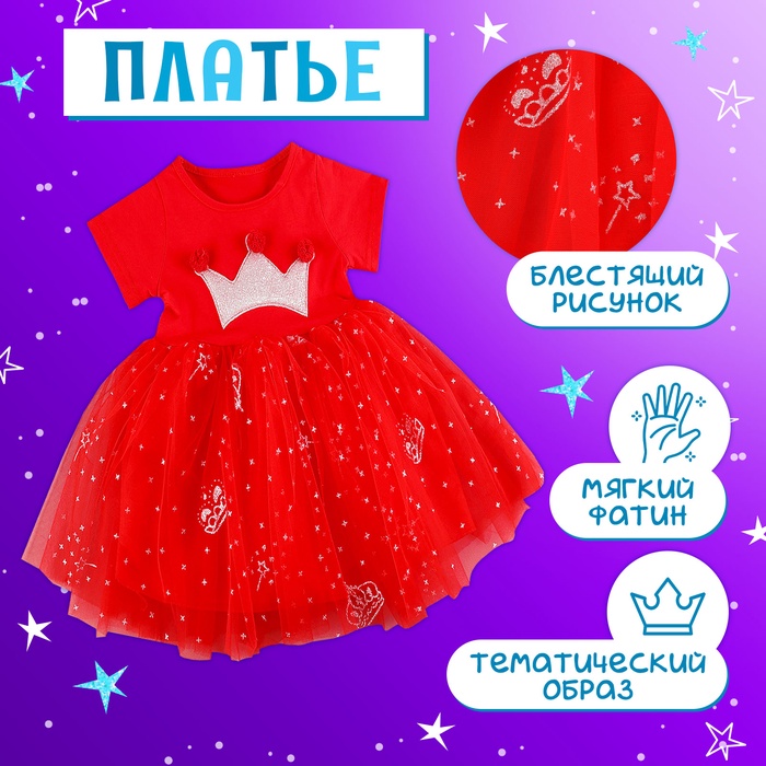 Карнавальный набор «Новогодняя принцесса»: ободок, платье красное с короной, рост 104-110 см — Характеристики