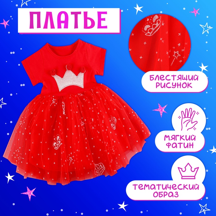 Карнавальный набор «Новогодняя принцесса», рост 110 см, ободок, платье с короной, красный — Характеристики