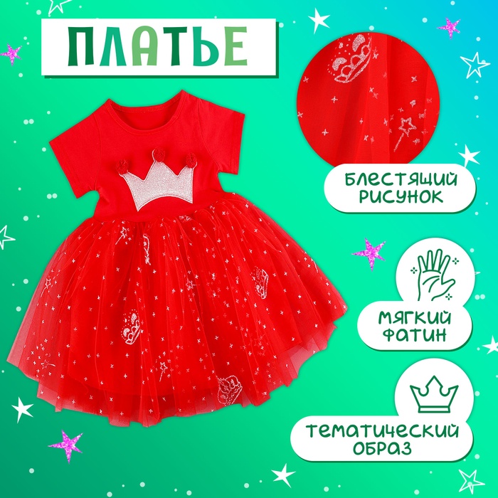 Карнавальный набор «Новогодняя принцесса», рост 98 см, ободок, платье с короной, красный — Характеристики