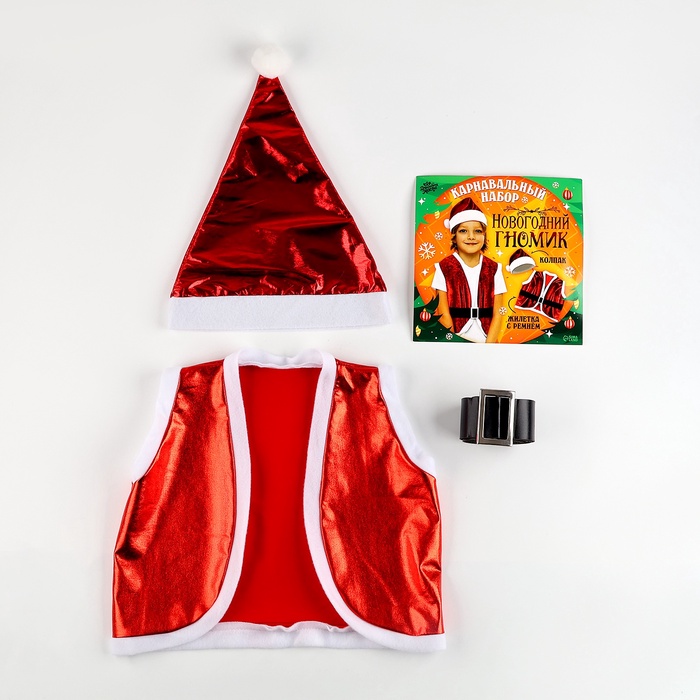 Карнавальный набор «Новогодний гном»: жилетка, ремень, колпак, рост 98-110 см, красный