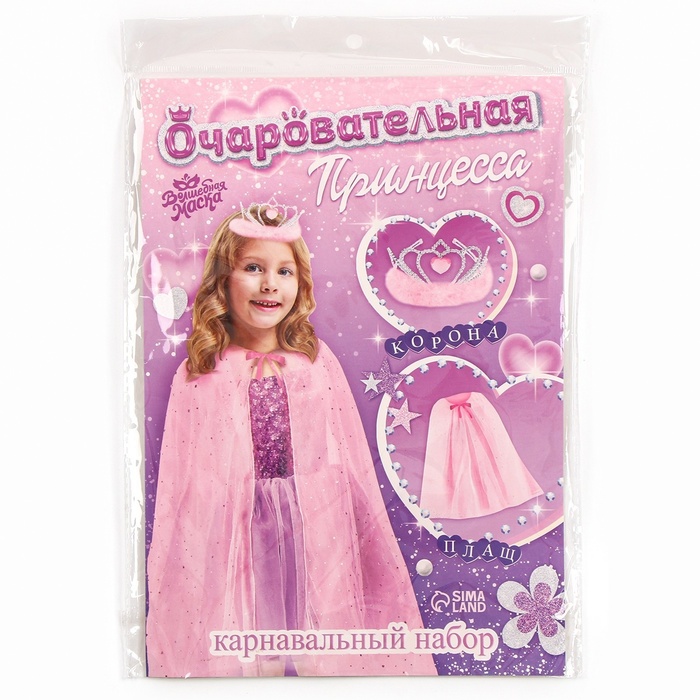 Карнавальный набор с розовым плащом и диадемой – прекрасный выбор для тех, кто хочет добавить в свои игры или праздники немного волшебства и сказочного очарования.