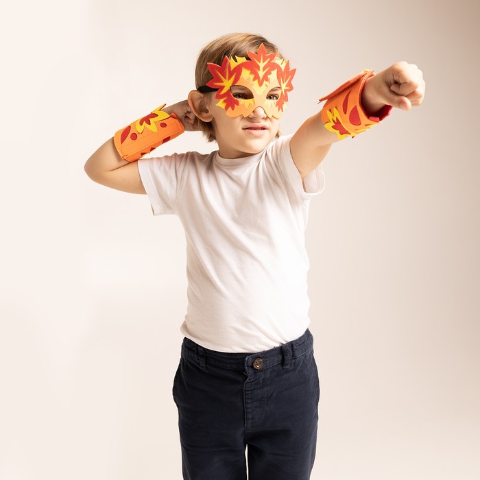 Карнавальный набор «Осенняя радость» — это универсальный комплект для детских праздников и тематических мероприятий. В набор входят маска на резинке и два браслета на липучках, выполненные из мягкого фетра. Такие аксессуары подойдут как для мальчиков, так и для девочек, добавив образу яркости и оригинальности.