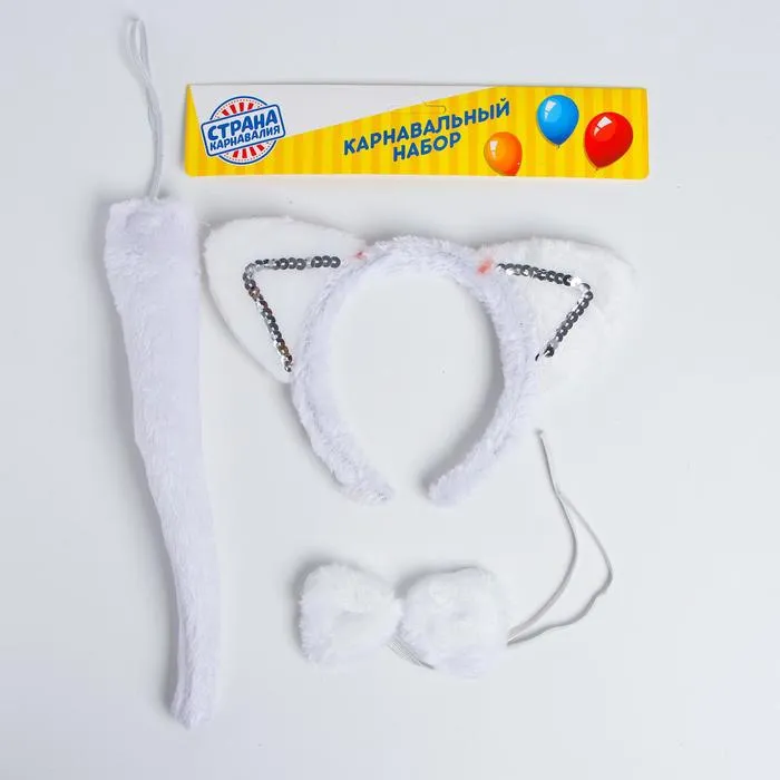 Карнавальный набор «Острые ушки» три предмета: ободок, бант, хвост, МИКС — Характеристики