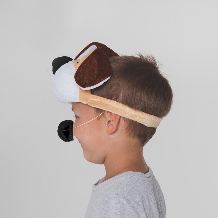 Карнавальный набор «Пёсик бежевый с рыже-коричневым пятном», маска + носик — Характеристики