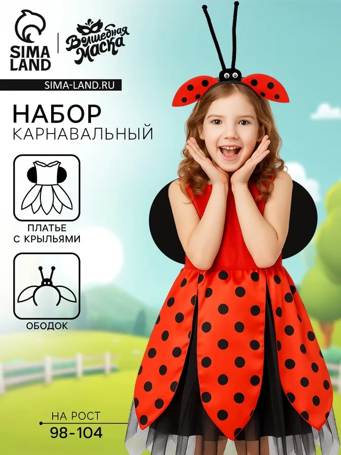 Карнавальный набор «Прекрасная Божья коровка»: платье, ободок, р. 98-104 см — Характеристики