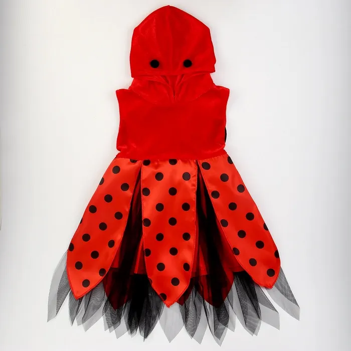 - Платье с крылышками: Лёгкое и воздушное платье с ярким принтом в виде божьей коровки. Крылышки придают образу волшебства и реалистичности. Платье выполнено из мягкого и приятного к телу материала, поэтому ребенку будет комфортно его носить во время праздника.