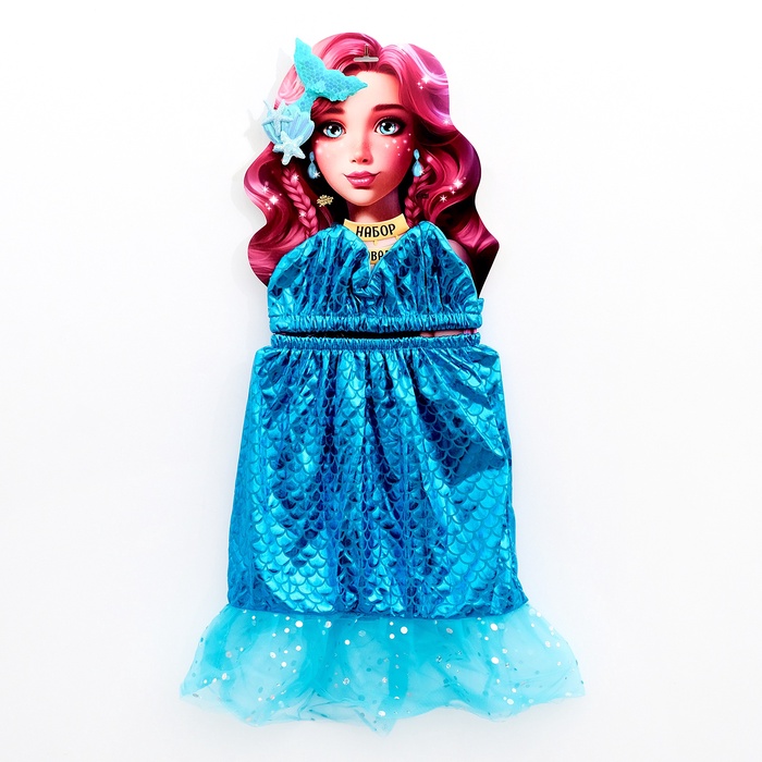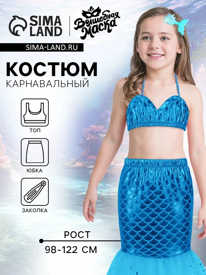 Карнавальный набор «Прекрасная русалочка»: юбка, топ, заколка, рост 98-122 см, голубой — Характеристики