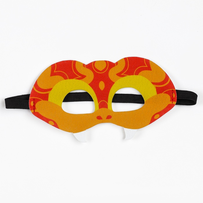 - Маска выполнена в виде мордочки змейки и надёжно держится на голове с помощью резинки.