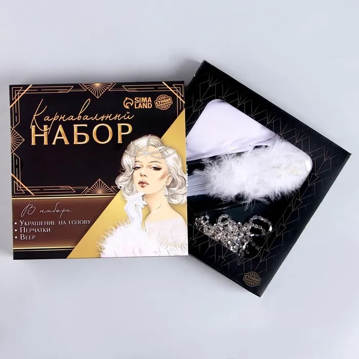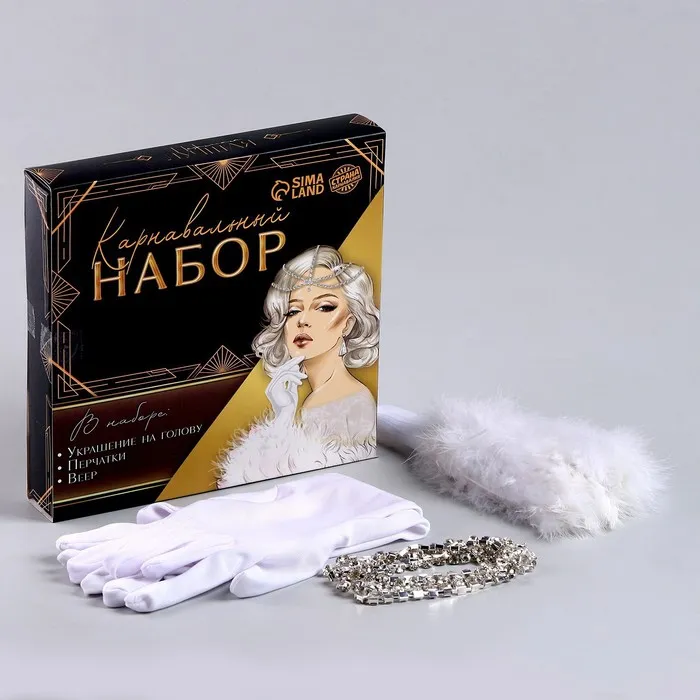 Новогодний карнавальный набор — это отличный способ дополнить праздничный образ и создать атмосферу ретро-стиля. Эти аксессуары помогут вам почувствовать себя настоящей леди из эпохи гламурного кино, добавив нотку изысканности в наряд.