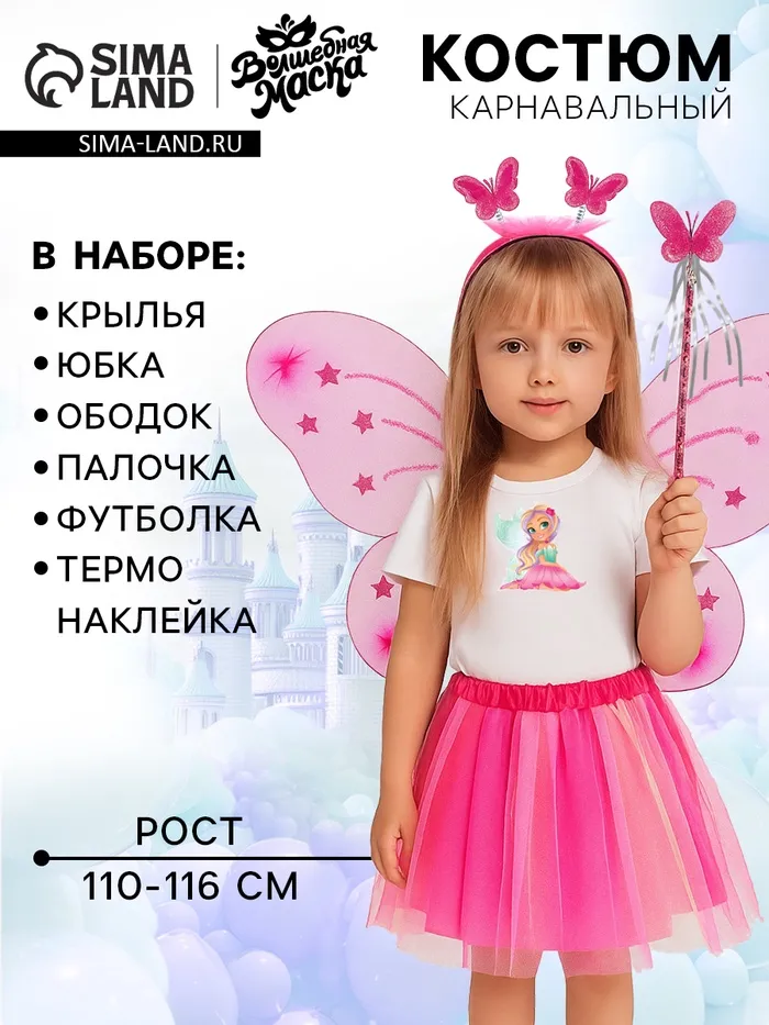Карнавальный набор «Сказочная фея»: футболка, юбка, ободок, крылья, жезл, рост 110–116 см — Характеристики