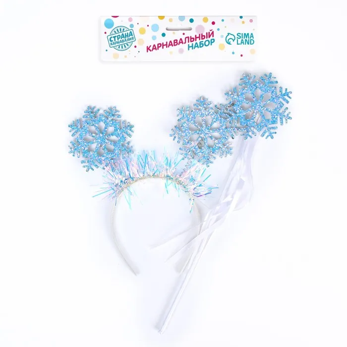 Карнавальный набор «Снежинка» – это идеальный выбор для создания волшебного и праздничного образа. В комплект входят ободок и жезл, которые декорированы снежинками, мишурой и лентами. Эти аксессуары помогут вам или вашему ребенку легко превратиться в любимого зимнего персонажа и подарить окружающим атмосферу сказки.