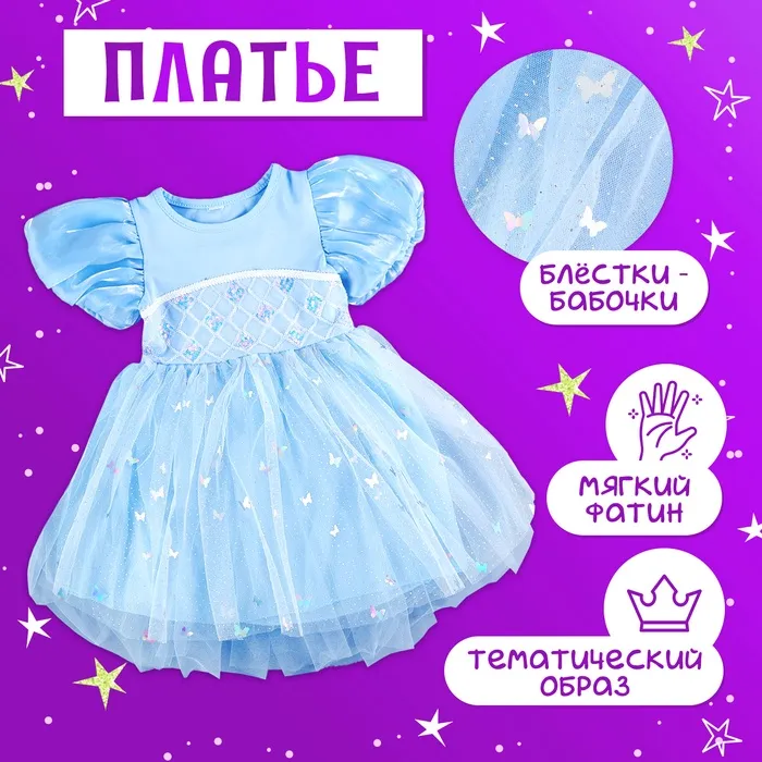 Карнавальный набор «Снежинка»: ободок, платье голубое, рост 104 см — Характеристики