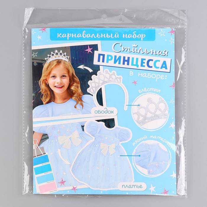 Превратите вашу малышку в настоящую принцессу с карнавальным набором «Стильная принцесса». В комплект входит изящное голубое платье и ободок, который дополняет сказочный образ. Этот костюм поможет создать неповторимый образ для любого детского мероприятия, будь то день рождения или новогодний утренник.
