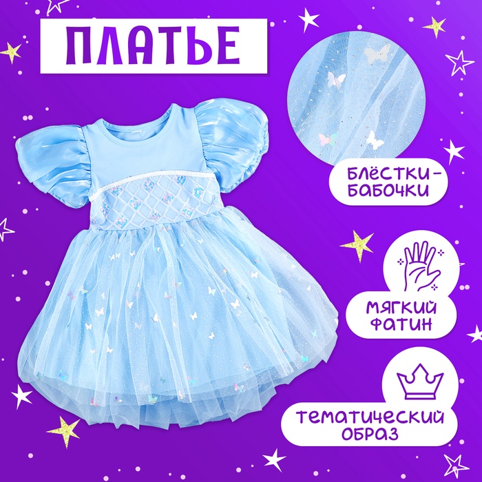 Карнавальный набор «Снежинка»: ободок, платье голубое, рост 110 см — Характеристики