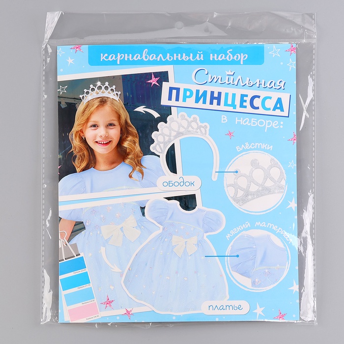 Превратите вашу малышку в настоящую принцессу с карнавальным набором «Стильная принцесса». В комплект входит изящное голубое платье и ободок, который дополняет сказочный образ. Этот костюм поможет создать неповторимый образ для любого детского мероприятия, будь то день рождения или новогодний утренник.