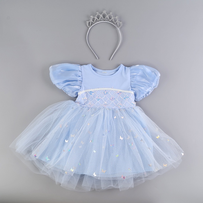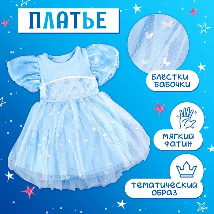 Карнавальный набор «Снежинка»: ободок, платье голубое, рост 98-104 см — Характеристики