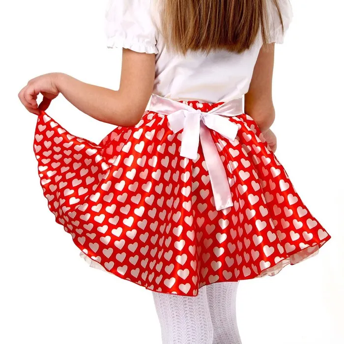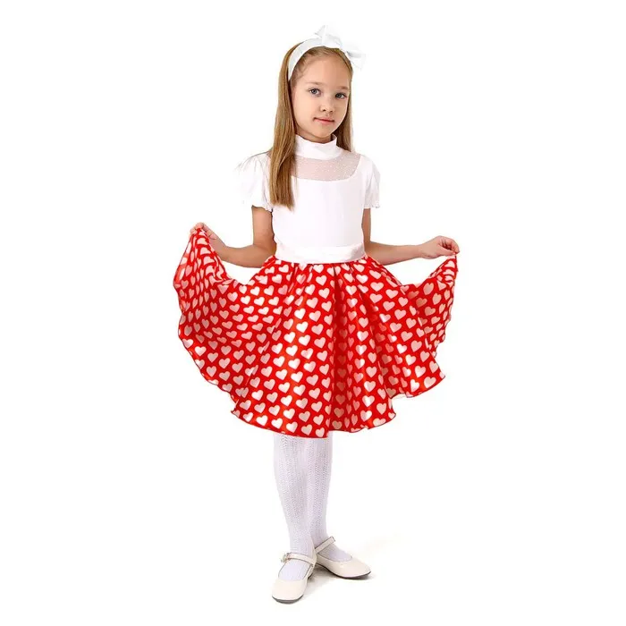 Карнавальный набор «Стиляги 3», юбка красная с белыми сердцами, пояс, повязка, рост 122-128 см — Характеристики