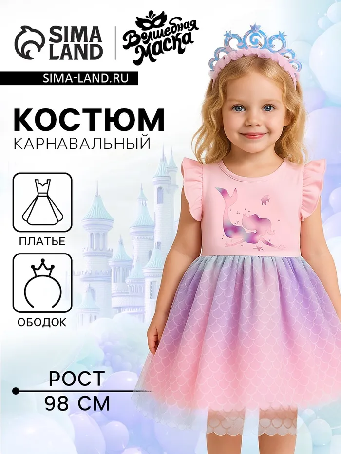 Карнавальный набор «Стильная принцесса», ободок, платье с русалкой, рост 98 см — Характеристики