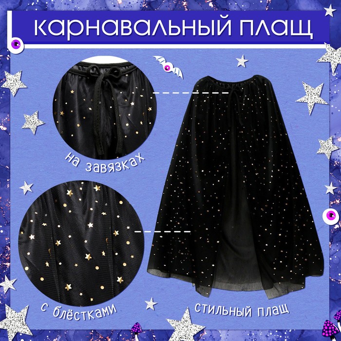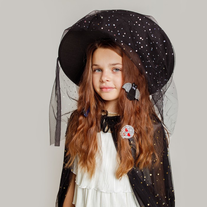 Карнавальный набор «Стильная ведьма»: шляпа, плащ, заколки 3 шт. — Характеристики