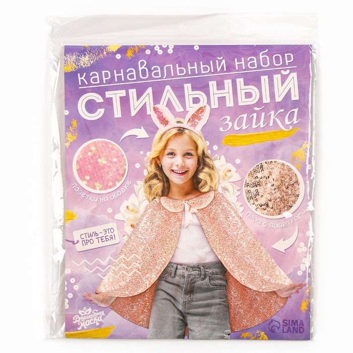 Карнавальный набор «Стильный заяц»: плащ с пайетками 65 см, ободок — Характеристики