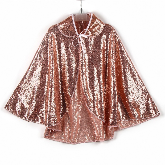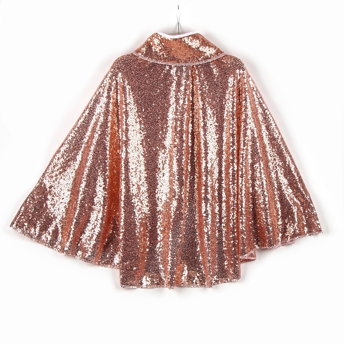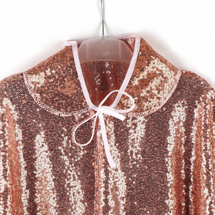 - Плащ длиной 65 см украшен пайетками и красивыми лентами, создавая эффектный внешний вид