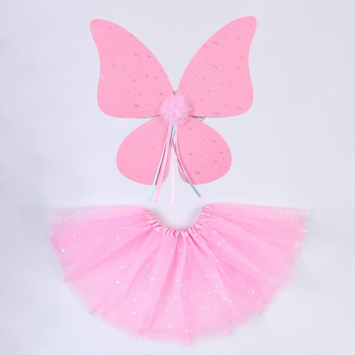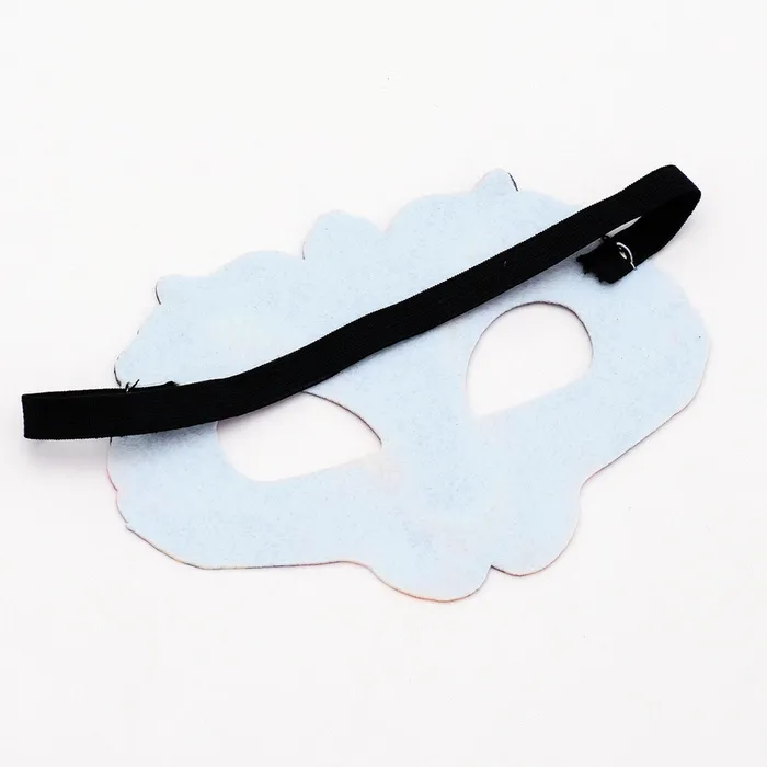 - Маска: Яркая маска на резинке украшена блёстками, придавая образу загадочности и волшебства.