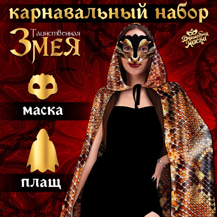 Карнавальный набор «Таинственная змея»: маска, плащ 120 см — Характеристики