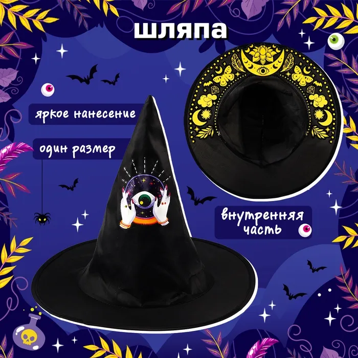 Карнавальный набор «Тёмная ведьма»: шляпа, воротник — Характеристики