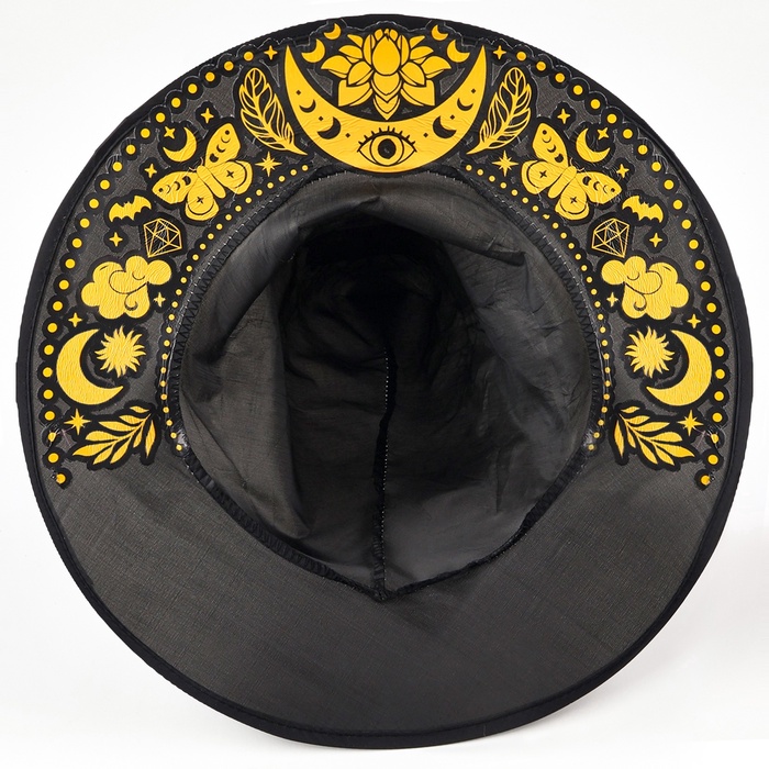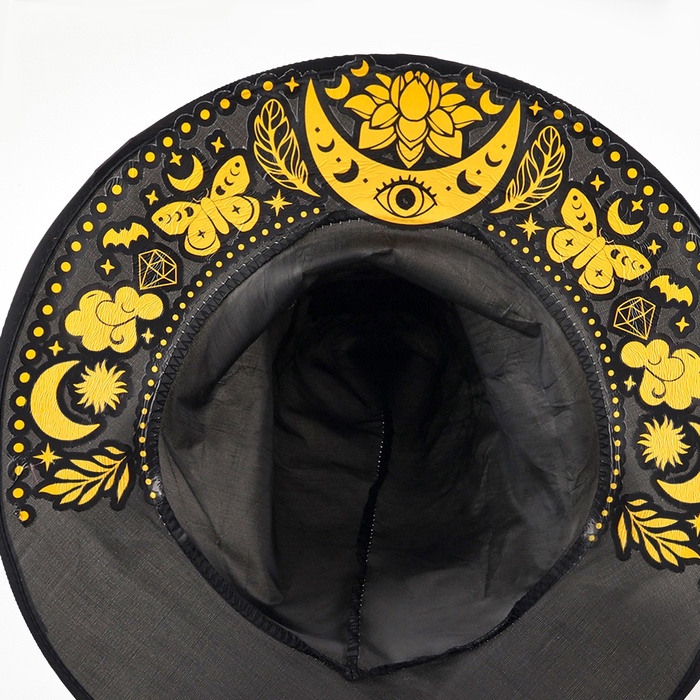 - Шляпа — выполнена в классическом готическом стиле с широкими полями. Её украшают изысканные узоры, создающие атмосферу загадочности и волшебства. Шляпа станет ярким акцентом вашего образа.