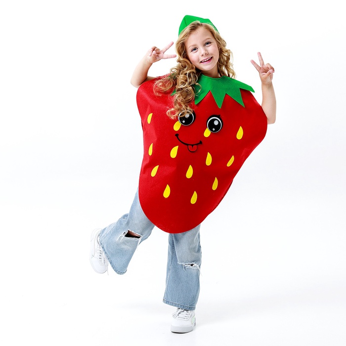 С набором «Весёлая клубника» ваша малышка станет настоящей звездой на детской вечеринке и поразит всех гостей! С ним вы составите полноценный образ, ведь в комплекте есть накидка и головной убор. Создавайте яркие эмоции и воспоминания на целый год вперёд себе и ребёнку!